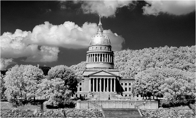 Another view of WV's State Capitol Building. Image made in black & white with an infrared filter over the lens.